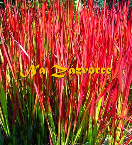 Okrasná tráva ´Red Baron´ (Imperata cylindrica ´Red Baron´)Okrasná tráva ´Red Baron´ (Imperata cylindrica ´Red Baron´). V kontejneru P9. Postupně se vybarvuje od červených špiček až po celé rudé listy, velmi dekorativní. Dorůstá výšky cca 0,5m.